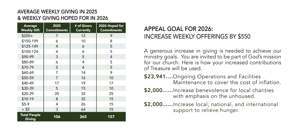 This letter is to invite you to begin preparing for Stewardship Weekend, November 15th & 16th, when we all will have the opportunity to make known our intended offering for 2026 to further the Mission of God’s Church at 3rd and Terry Street.